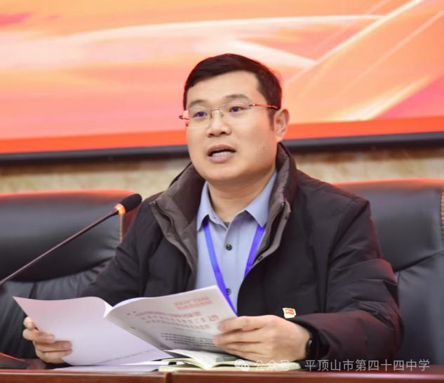 为深入学习贯彻党的二十届四中全会精神,切实把全会精神转化为推动学校教育事业高质量发展的强大动力,2025年12月22日,平顶山市第四十四中学在报告厅隆重开展以“深学细悟党的二十届四中全会精神 实干笃行彰显教育担当本色谱新篇”为主题的十二月主题党日活动,全体党员齐聚一堂,党建办主任吴艳培同志主持。